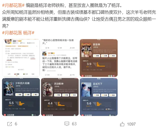 各位读者,你们看《凡人修仙传》了吗?从整体上看,《凡人修仙传》取得的成绩非常亮眼,但让大家没想到的是,这部剧之后,杨洋还要接拍“仙侠剧”,而这次搭档的女主颜值比金晨高,各位读者,你们知道她是谁吗? (本文所有图片,全部来自网络,感谢原作者,如侵犯您的权利,请联系本号作者删除。图片与内容无关,请勿对号入座) 《凡人修仙传》刚官宣定档的时候,大部分网友都为杨洋捏一把“冷汗”,就连杨洋本人都非常紧张,我们都知道,《我的人间烟火》对杨洋的影响非常大,而他饰演的宋焰直接被吐槽“油”,正因如此,《凡人修仙传》刚开播,“杨洋不油了”话题率先登上热搜。 看到这样的话题,网友们才开始追剧,在《凡人修仙传》中,杨洋饰演穷小子韩立,为了让家人过上更好的生活,减轻家里的压力,所以韩立选择拜入一个小门派,但他却凭借努力和合理的算计,最终修炼成仙。 在追剧的过程中,很多网友都表示:杨洋饰演的韩立帅出新高度,最初的韩立是一个“脏脏包”,开启修仙之路后,他变得风度翩翩,特别是长春功第四层修成开始,韩立直接兼具神性和灵性,再次验证粉丝的话:脸在江山在。 《凡人修仙传》后,杨洋还有一部待播剧《雨霖铃》,这部剧讲述的是:正直无私、智勇双全的御前四品带刀护卫展昭,在调查好友留下的悬案时,遭遇各方势力的阻挠,当他结识来江湖闯荡的玲珑山庄大小姐霍玲珑,以及热血冲动的“锦毛鼠”白玉堂后,他们三人携手调查案件,最终还原事情真相。 这部剧是一部古装武侠剧,目前,武侠题材电视剧,期待值最高的是成毅主演的《赴山海》,这部剧因为一些原因,迟迟没有定档播出,但因为《莲花楼》成为爆剧,现在观众对武侠剧是非常期待的,所以《雨霖铃》也是一部自带热度和关注度的电视剧。 从网上传出的消息上看,杨洋将再次接拍一部仙侠剧,这部剧就是《月都花落》,也是根据热门小说改编而成,讲述的是:第二任沧瀛神胤泽用神界“洛水”临月建立了一座空城,百年过后,这里竟形成一个国家和崇拜胤泽的溯昭氏,而故事也因此展开。 根据知情人士透露,这部剧的编剧是杨洋的铁粉,曾在多年前喊话:自己入圈就是想给杨洋写本子,如果杨洋真的能接这部剧,也算是完成粉丝的一个心愿了,而能和自己喜欢的男明星合作,这绝对是非常好的机会。 在追《凡人修仙传》的时候,我们可以发现,杨洋的镜头非常好看,完全将他的帅气呈现出来,这与女导演的精心拍摄密不可分,作为杨洋的粉丝,编剧老师一定知道,杨洋适合什么路线,所以如果杨洋能够接下《月都花落》,绝对是一件非常好的事情。 《凡人修仙传》播出的时候,我们可以看到,有网友吐槽金晨饰演的“南宫婉”,这个角色是仙界第一美人,可是很多网友却认为金晨缺少一些仙气,因为角色看起来不是那么仙气飘飘。 从网上传出的消息上看,在《月都花落》中,杨洋将搭档田曦薇,我们都知道,田曦薇的古装造型颜值在线,并且最擅长饰演古灵精怪的少女,如果她真的能和杨洋搭档,绝对是不错的选择。 各位读者,看到网上传出杨洋要接拍《月都花落》的消息,你们期待吗?对杨洋来说,古装剧绝对是他的舒适区,但也应该适当地转赛道,尝试不同类型的角色。 |